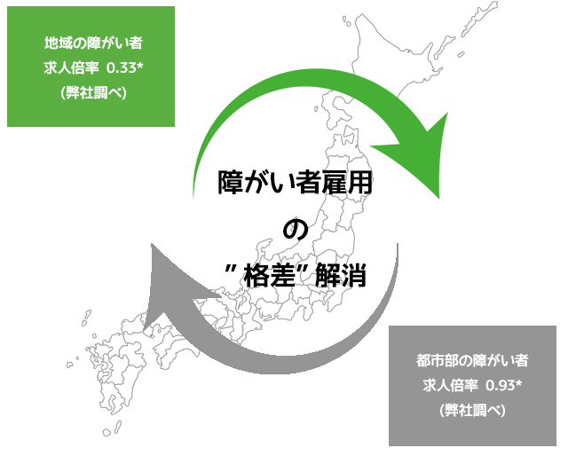 働きたい障がい者の希望や環境にあわせ、リモート、 サテライトオフィス、地方拠点など多様な場所・環境で 就労できる機会を提供していきます。
